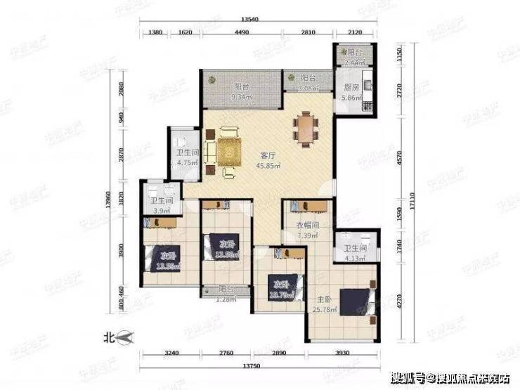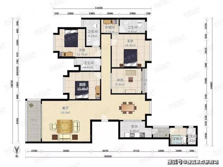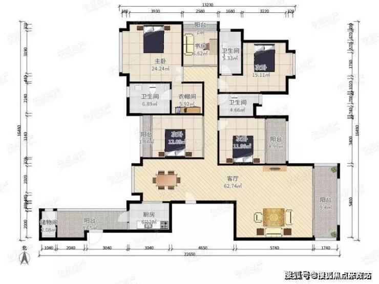 香蜜湖最大平层,2梯2户纯板楼设计,南北通透5+1房4卫3套房设计,毛坯现楼3**6-4000万!