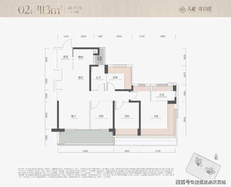 02户型的113平4房2卫,和05是一样的户型,但02是朝南看海景的: