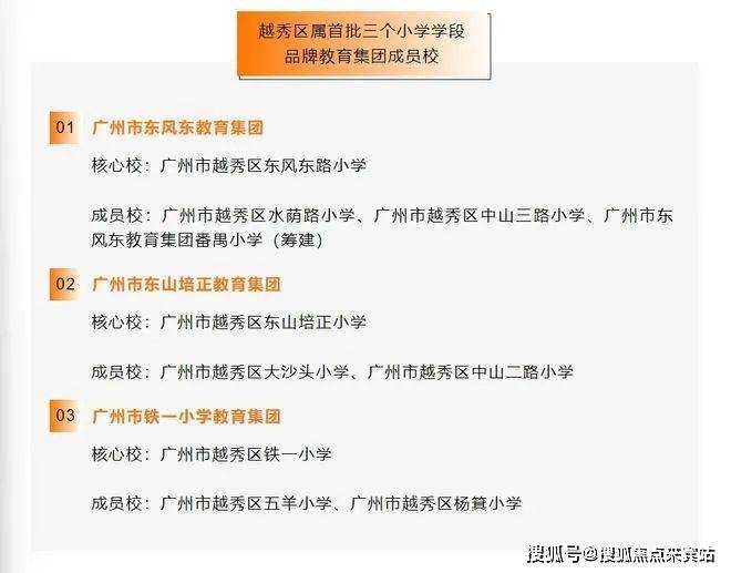 根据越秀区小升初电脑派位分组,对口初中均为传统名校,如广东省实验中学、铁一中学(越秀校区)、培正中学等。
