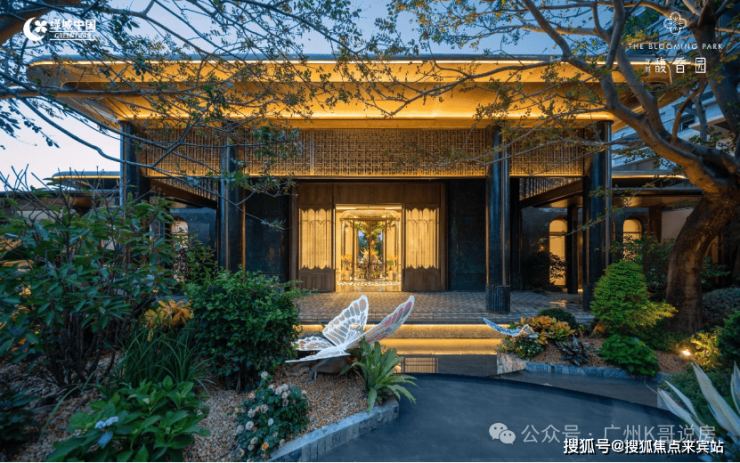 这次实景进一步打开全维庭院臻赏。花瓣圆柱造型、范思哲黑石立柱、铂金钻奢石底座,尊贵门庭仪序昭示,与馥香门庭呼应,打造古代大宅府邸的后花园。