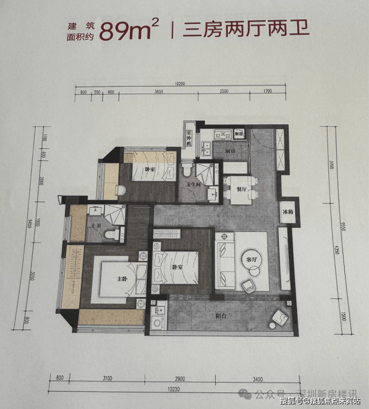 项目总高32层,2梯6户,精装修交付,新增89㎡横厅3房2卫户型,实体样板间和园林已开放,去年卖的3/5栋2026 年底交付,而今年加推的1/2栋2027年年中交付,机会难得,不容错过。