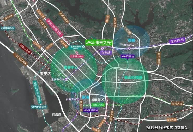 宝安&南山双区驱动 西部湾区城市带,近邻南山科技园、留仙洞总部基地、宝安中心、前海自贸区等片区,集合向西发展带优质城市资源。