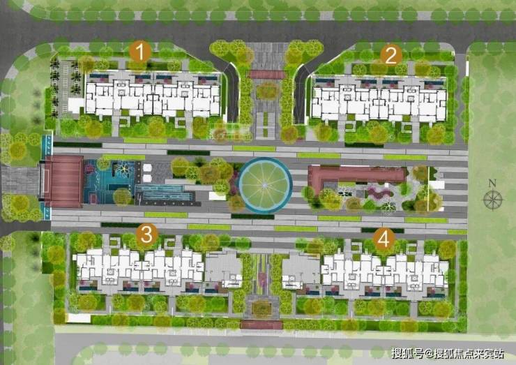 中心景观:下沉式中庭泳池,为园林赋予更立体的中心景观面