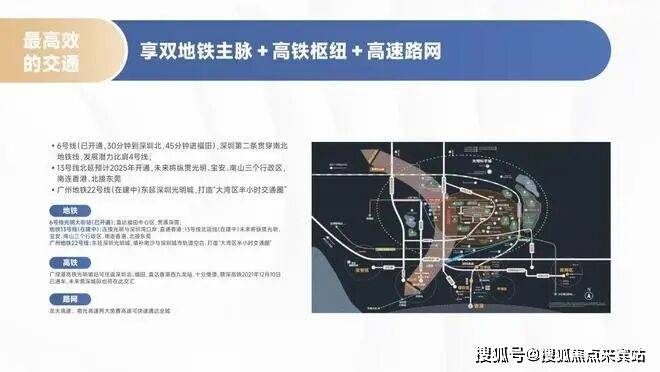 项目靠近地铁6号线【光明大街】站(已开通)直达福田,地铁13号线(在建)连接光明与深圳湾口岸。龙大高速、南光高速两大免费高速可快速通达全城。广深港高铁光明城站往返深圳北、福田便捷,赣深高铁及未来的莞深城际也在此交汇。