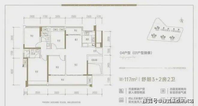 从户型图看,南北通透双阳台设计,满足生活和景观的需求,主阳台开间长达6.8米,连通次卧,通风采光都做到极致。