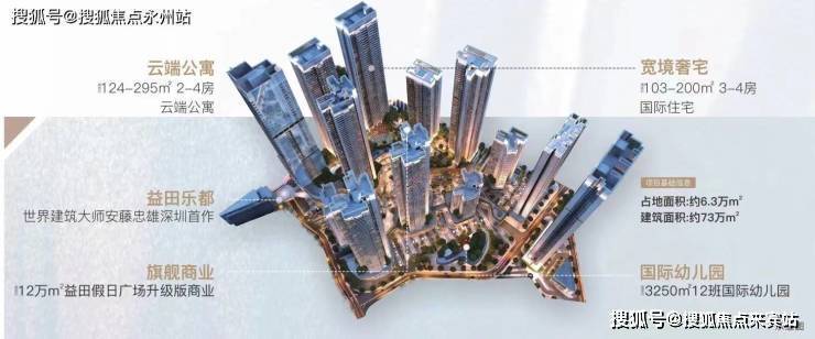 综合体:建面约73万㎡人文都汇综合体,集国际住宅、云端公寓、全新商业旗舰、益田乐都于一体,汇聚全球大师灵感,驭领城市发展潮流。
