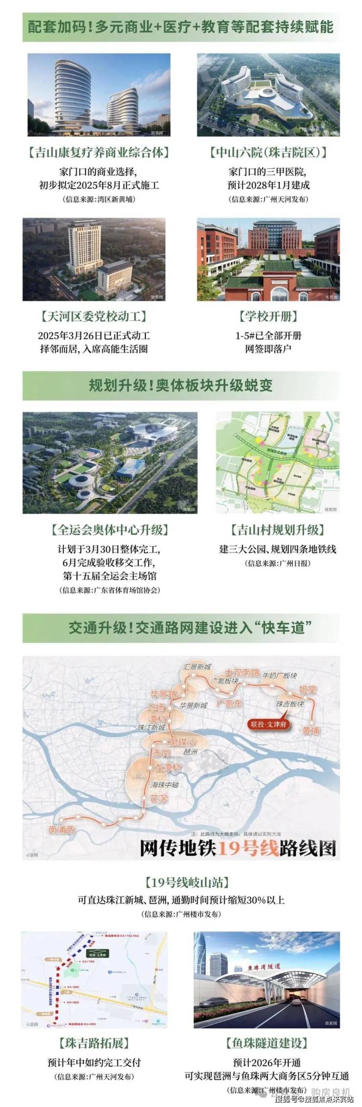 天河奥体作为第十五届全运会开幕仪式举办地,政府投入9.7亿焕新天河奥体,以科技赋能全运会,正式体现政府对奥体建设的高度重视;吉山旧改规划敲定,规划4条地铁、三大公园,新增多处学校,周边基础设施城市界面将再次全面升级。