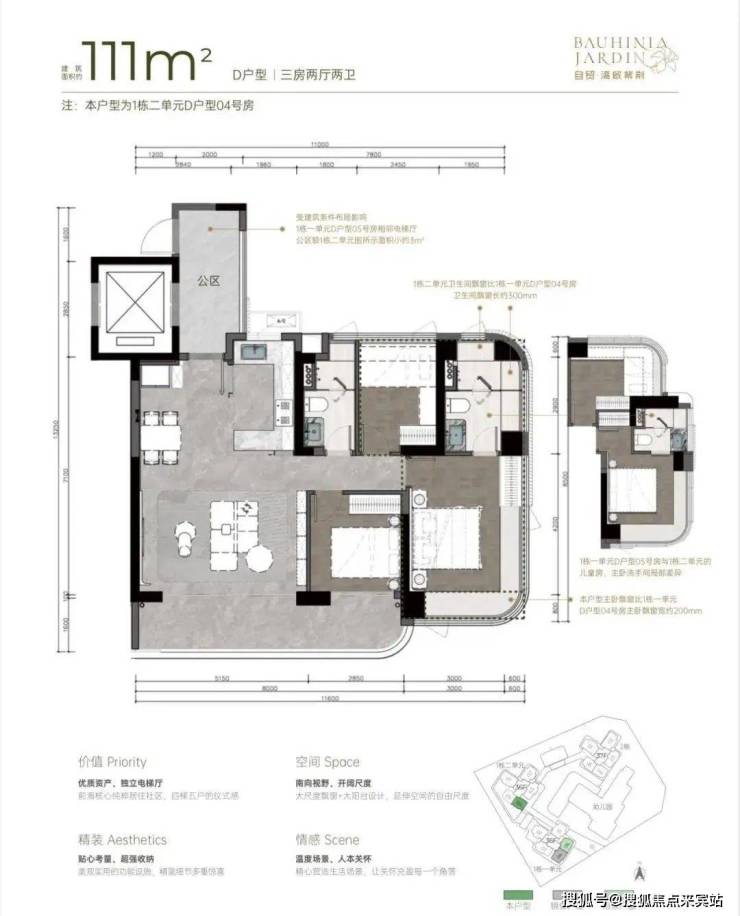 门槛更高,2栋主要为改善大户型,没有96平的三房产品,最小111平三房,总价960万起,更多是针对改善客户。