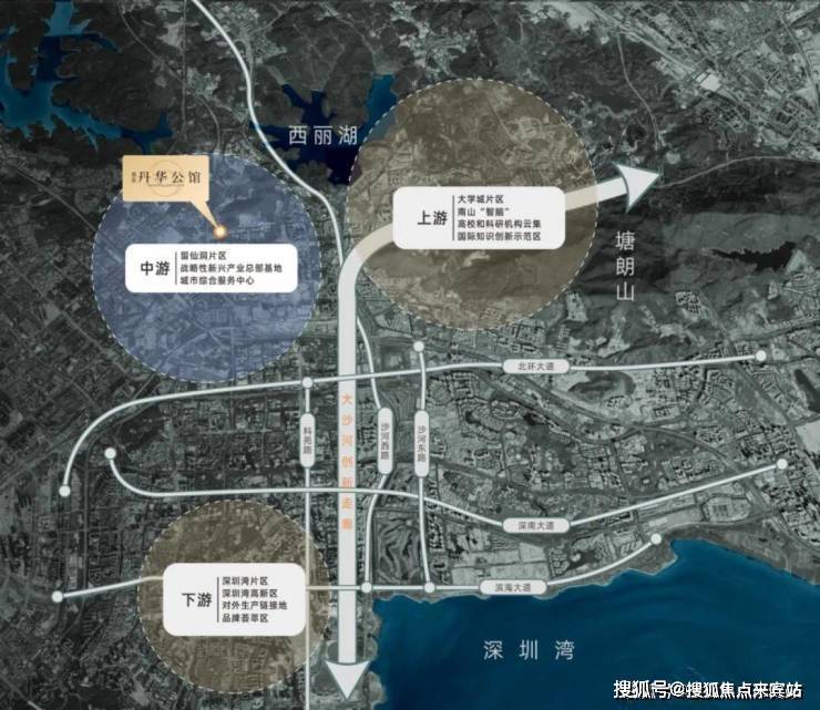 双总部基地——留仙洞和科技园核心区,世界500强总部环伺(大疆创新、乐普医疗、天珑移动等),未来片区将有60万高端就业人口,约1500家企业入驻。