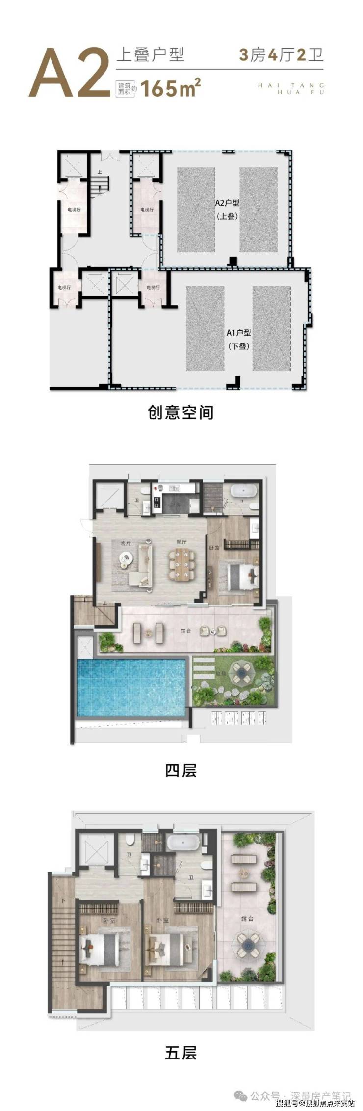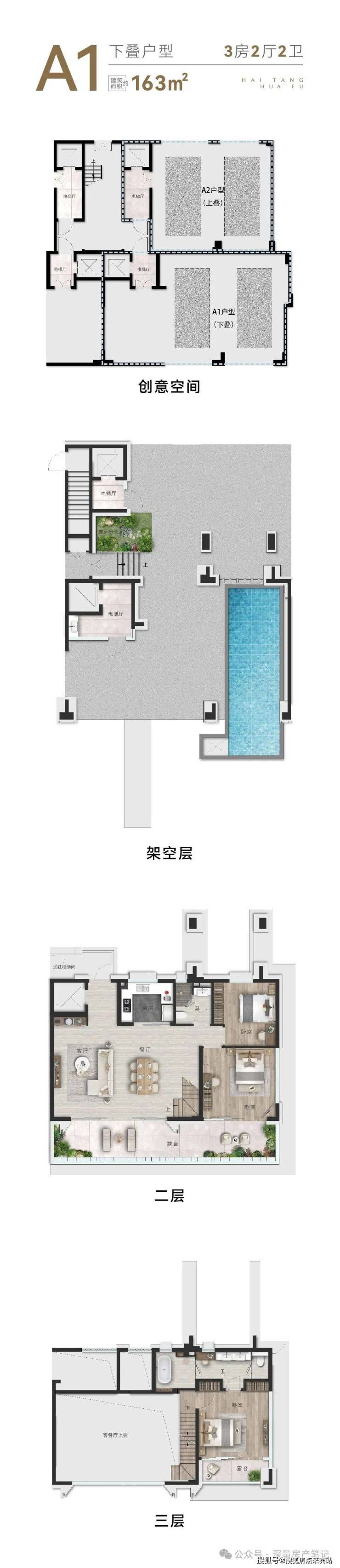 低密栖海叠拼:上叠建面165㎡,下叠建面163㎡