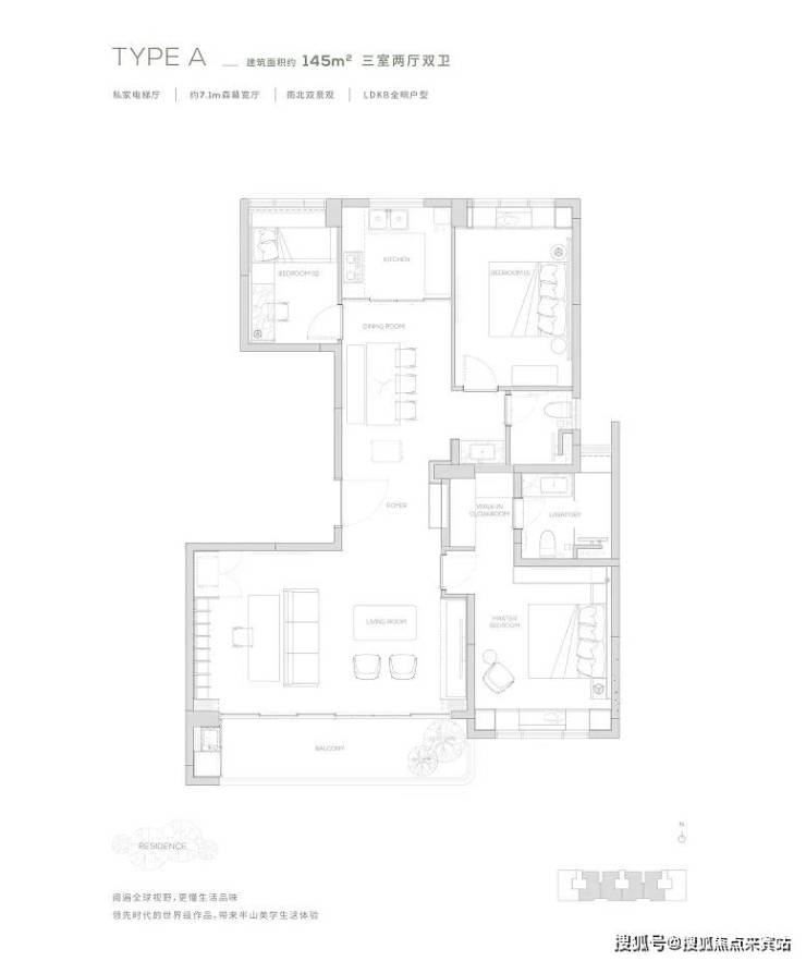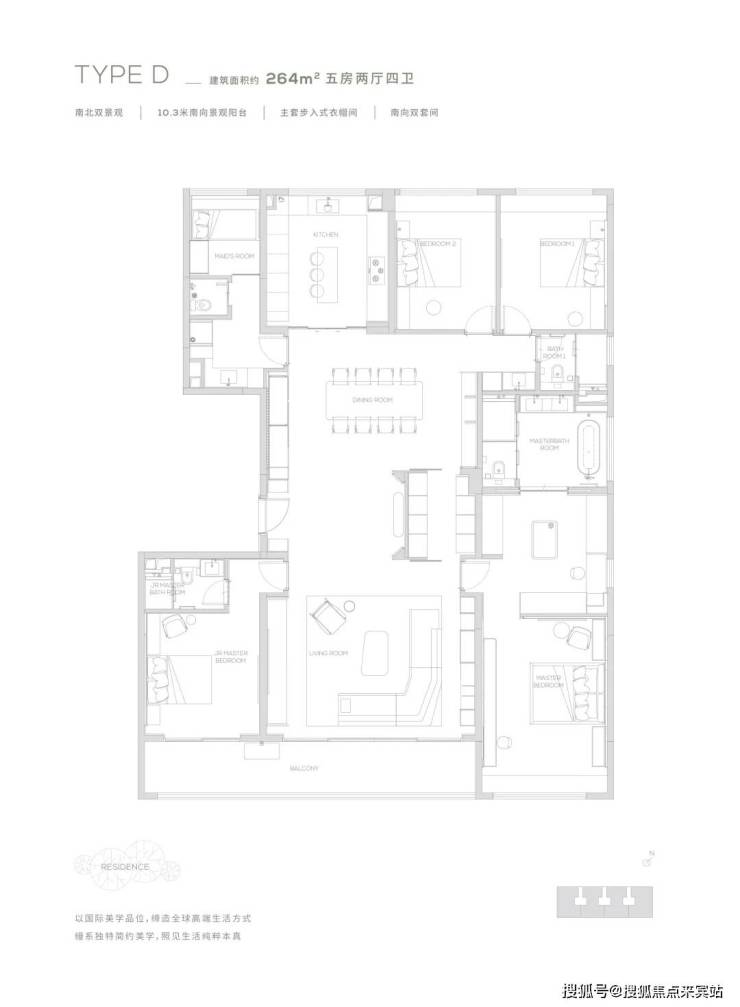 10.3米南向景观阳台-南北双景观-主套步入式衣帽间