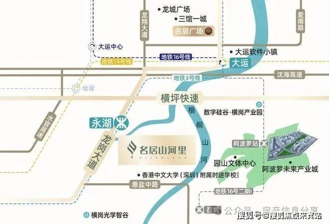 “三地铁”自由出行3号线:约200m即永湖地铁口,两站到大运,8站到罗湖14号线:两站达大运,7站抵达布吉,10站即达岗厦北16号线:一站达大运中心,速联园山街道,抵达阿波罗未来产业园。