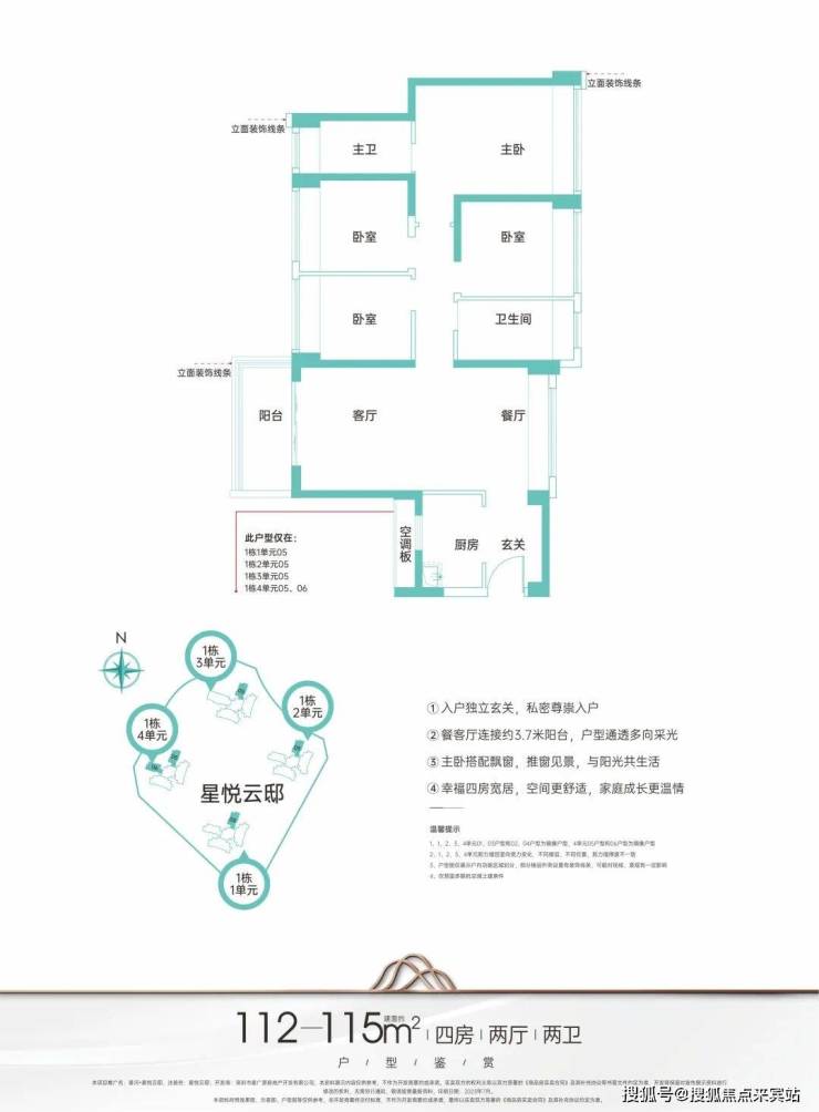 主力户型建面约95-124㎡臻品三至四房,启悦城市美好未来
