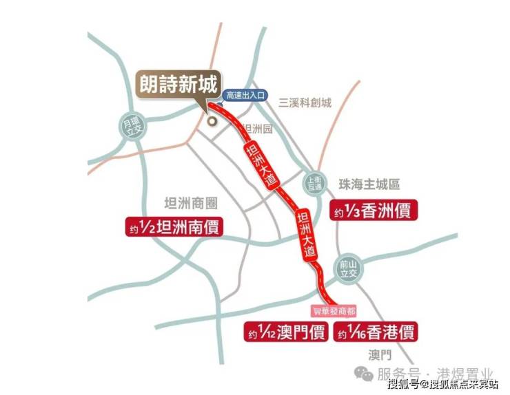 項目位於大灣區價格窪地、與珠海香洲北一路之隔的中山坦洲,出門即坦洲大道,12分鐘可達珠海市中心,僅1/16香港價!1/12澳門價!1/8深圳價!1/4珠海價!購房成本低!易上車!即享大灣區全配套健康生活
