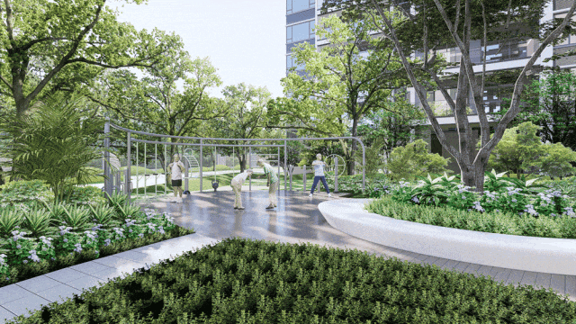 譬如在儿童游乐区,玩乐设施根据年龄段进行设计,让混龄、多元乐趣在此悉数聚合;在活力慢跑空间中,每位业主都可以在林荫下尽情运动,燃烧卡路里。