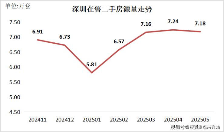 截至2025年6月2日,据深圳市房地产信息平台公开在售二手房数量统计,全市有效在售二手房源71791套,对比上月同期统计的72391套在售房源减少600套,环比下降0.8%,随着二手房市场成交量有所下滑,业主委托出售意愿有所减弱,市场呈现短期观望态势。