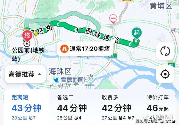 自驾去往越秀公园前:出小区,走岐山路转至广园快速,然后转内环路,全长23公里,耗时43分钟,打车的话40多块。