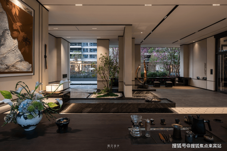 9栋「云涧·艺享茶厅」 茶厅隐于绿植,三面环景,270°通透设计将庭院竹海、叠水景观引入室内,让人沉浸于慢节奏中,静享慢生活。