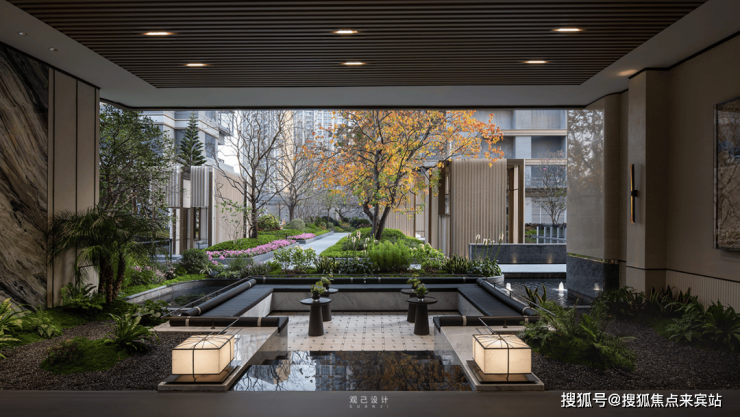 在园林上,摒弃市面上多用的围合式设计,其以垂直立体的景观的方式呈现。只要你变换位置,视角和景观面就会呈现不同的“丰盛”,整个园林常看常绝新,趣味性牵动了情绪的愉悦。