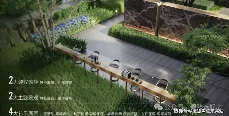 将自然之美与精致工艺融为一体,打造景观会客厅、艺术水景、户外吧台、阳光草坪等静谧空间。