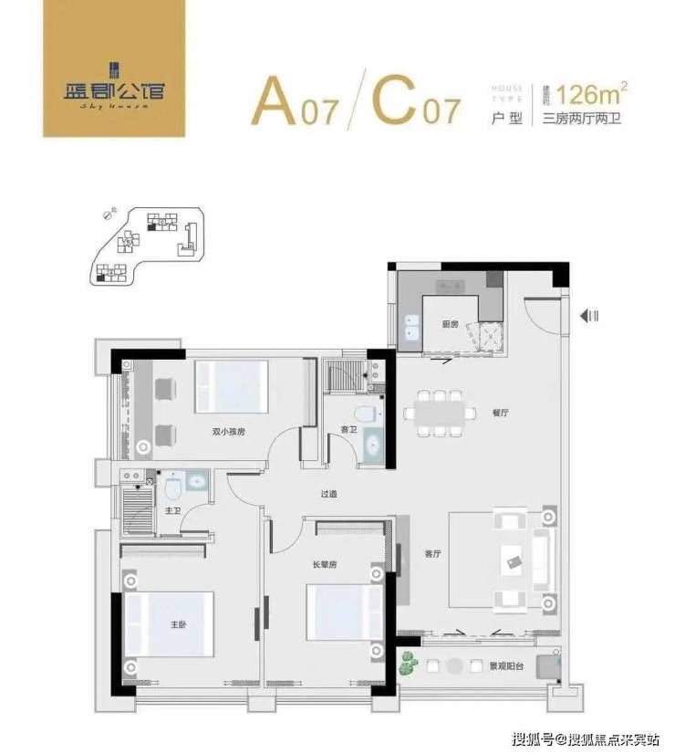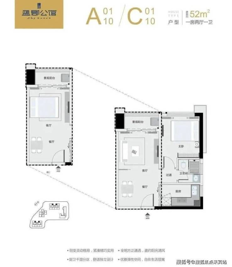 融汇公寓、办公、商业等多功能配套,以公寓作为核心产品,涵盖52-127㎡1-3房多重轻奢空间。