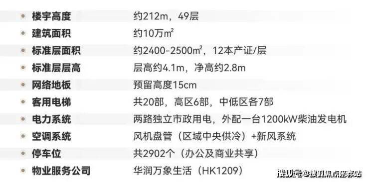 前海华润大厦是华润前海中心的商务写字楼部分,华润前海中心定位为华润金 融综合体,集商务工作、美学生活、社交休闲、人文艺术、个性潮流跨界元素于一体。该项 目由国际知名建筑设计团队打造,建筑外观独特现代,宛如扬帆起航的巨轮。大厦总建筑面 积约34万平方米,地上45层,地下3层,标准层面积约2100㎡,内部空间设计合理,采光充 足,视野开阔,还配备先进智能化系统。
