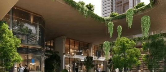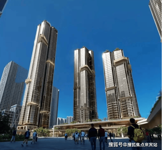 另外底部主要是做成玻璃格子的街铺,未来可以引进一些轻奢或者高奢店,类似于深圳湾1号的底商,满足高净值人群购物需求。效果图设计方案中还有一些亮点:例如多层次的底部花园、延伸周边的花园以及连接整个深圳湾的步行系统。