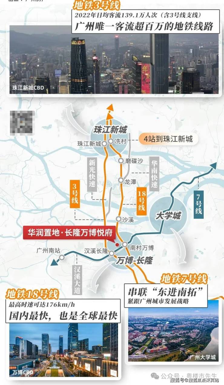 地铁:紧邻地铁3号线、7号线汉溪长隆站(步行约8分钟),距离18号线南村万博站1.2公里。