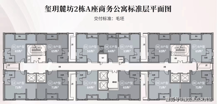 推售产品: 建面约44-71㎡ 1-2房公寓产品