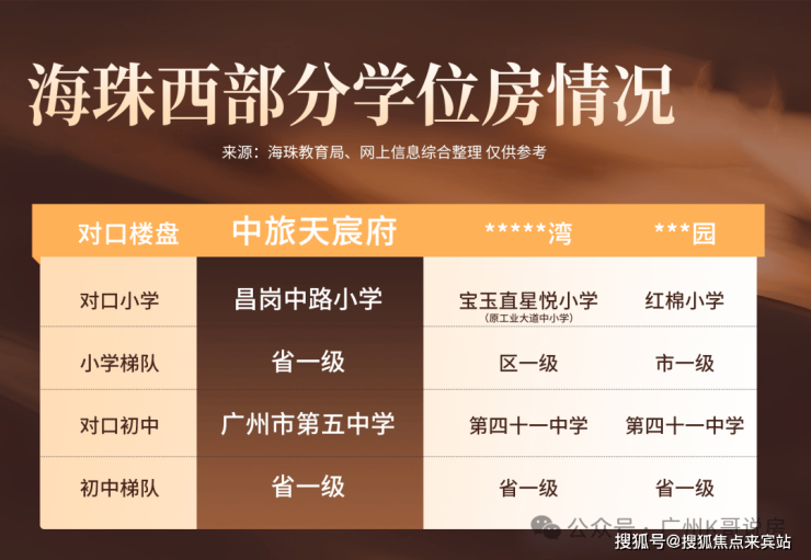 项目位于海珠区最强教育板块之一,根据海珠区教育局公布《2024年海珠区公办小学招生服务地段表》:中旅天宸府所属沙园街橡胶新村社区,约500米直距昌岗中路小学,符合就近入读条件。