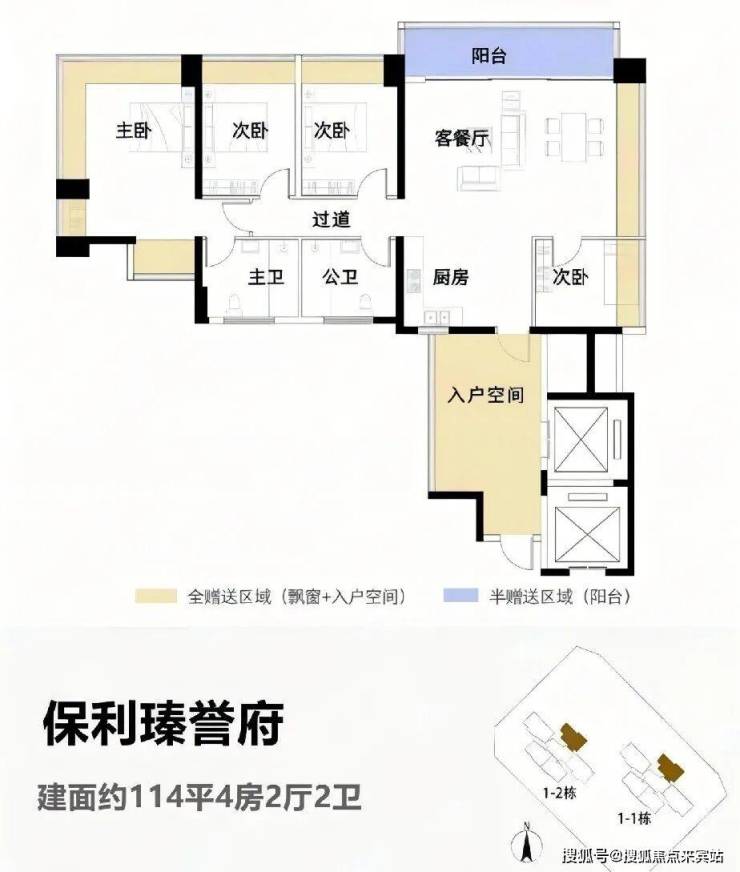 4梯5户带独立电梯厅,面积为114-122-138-143㎡,最大使用率108%,最大赠送面积接近44㎡。