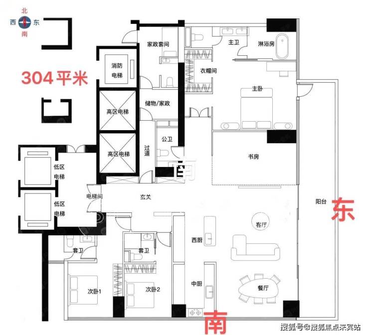 ——低区 4F起(150米以内)是约209-304㎡四房大户型;