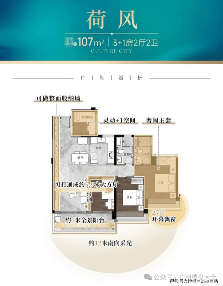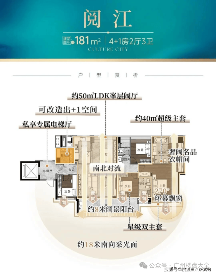 建面约107–181㎡的新规纯四房,全部为南向,无论面积大小,均保证多开间朝南,室内采光和通风表现良好。