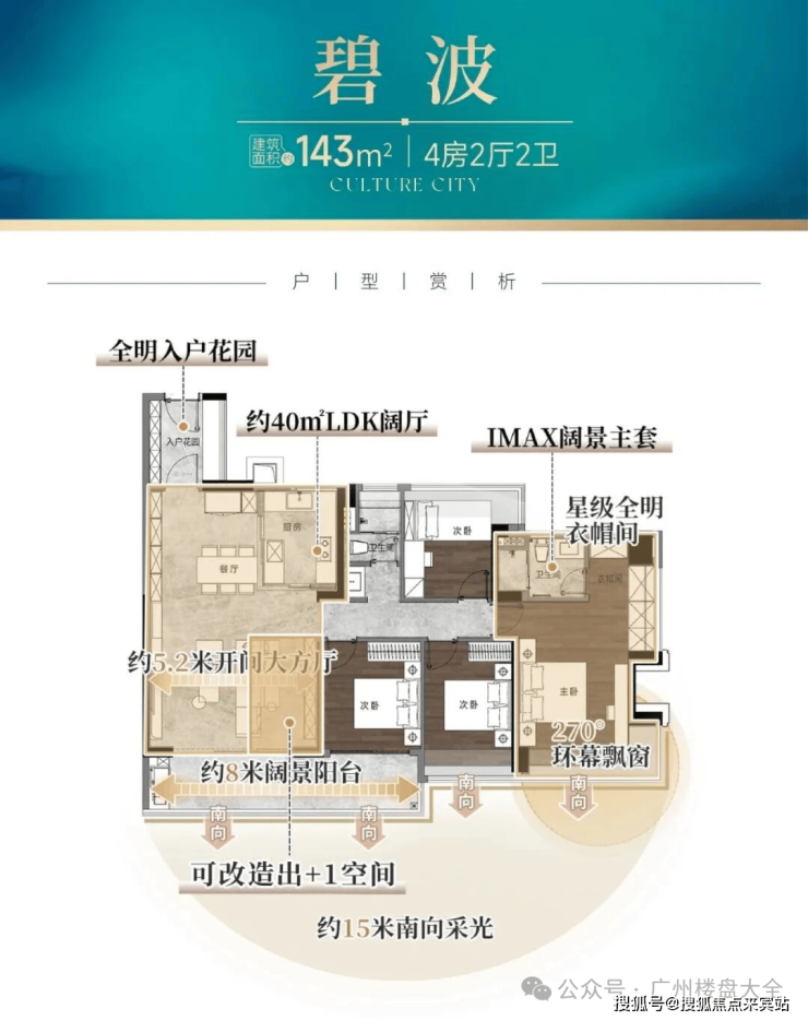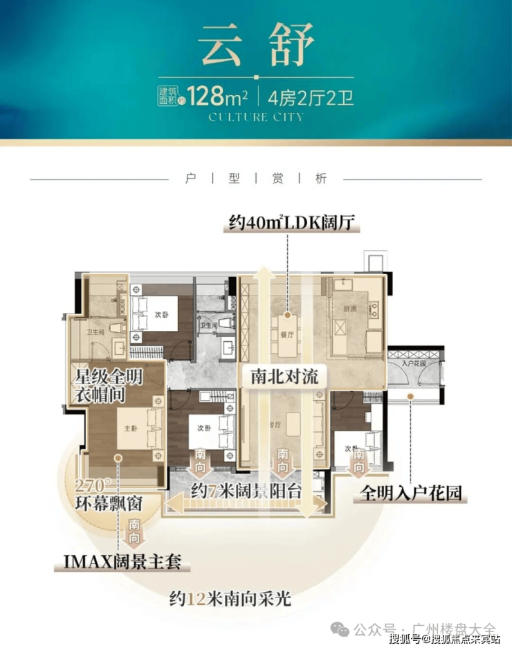 建面约128㎡的四房,则做到约16米南向采光、南北对流,且拥有一个约40㎡LDK阔厅,碾压市场同面积产品。