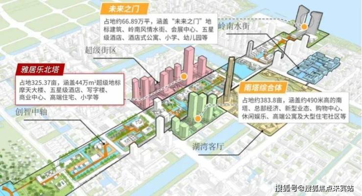 项目涵盖有36班制小学即为雅居乐小学、20万㎡国际商业广场、10万㎡大型主题乐园、体育公园、44万㎡北塔地标建筑、双五星级酒店、甲级写字楼、全面积产品线高端住宅等配套,居住功能丰富。