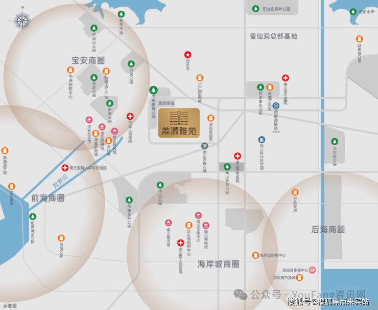 💎前海深港合作区(西南向约4km):定位国家战略性门户枢纽,未来将打造成世界级城市新中心,规划就业人口约65万人,居住人口15万人。