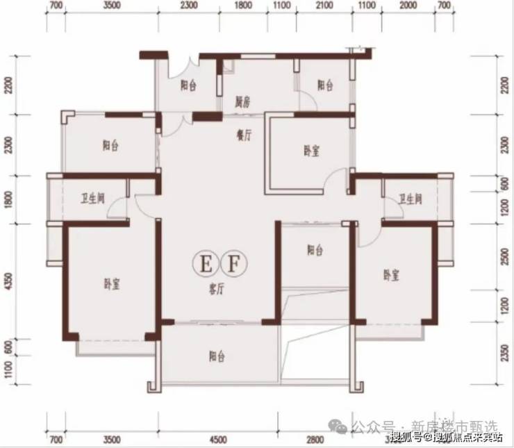 6栋EF户型奇数层164㎡四房两厅两卫四阳台