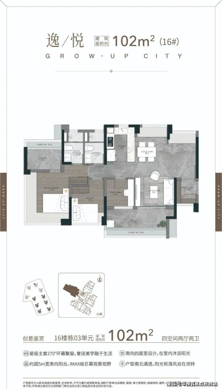 103㎡四空间两卫,三代同堂换房必看,阳光入户 五开间约14m采光 开放式厨房,270℃无立柱转角阳台 阳光梳妆台&衣帽间。🎥广州越秀大学星汇锦城售楼处电话☎️:4008563771【售楼处已认证】⭕✨*༅༻
