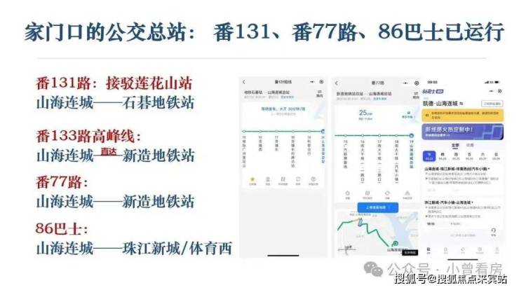 地铁交通:距离项目2.5公里处有莲花山站,佛莞肇城际已经开通运营了,3 站到长隆万博,4 站到广州南站。另外佛莞深城轨琶洲支线还在建设中,(2 站到大学城,3 站到琶洲)以及广中珠澳城轨(规划中)和8号线地铁的东延段(预计2027年通车)。