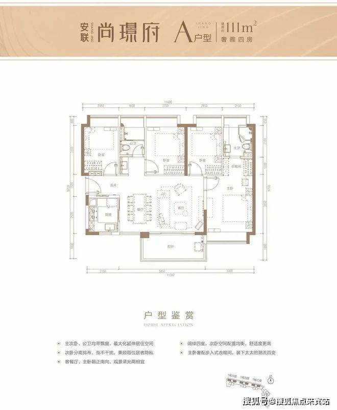 建筑面积约111㎡户型,通透结构横厅布局,大开间短进深,通风采光性能佳。餐客厅明亮舒适,大有大进深阳台,功能全面。主卧自然通透,功能全面独立衣帽间。次卧空间配置均衡,功能灵活,视野开阔。厨房有良好的独立性,功能布局合理。