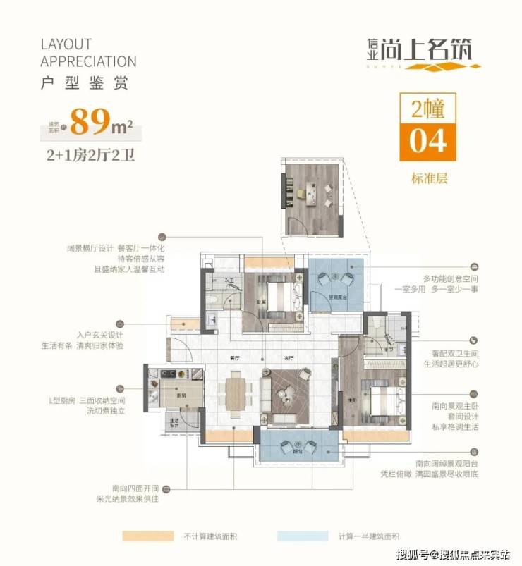 👑阔绰97㎡2+1房2厅2卫【南向景观】