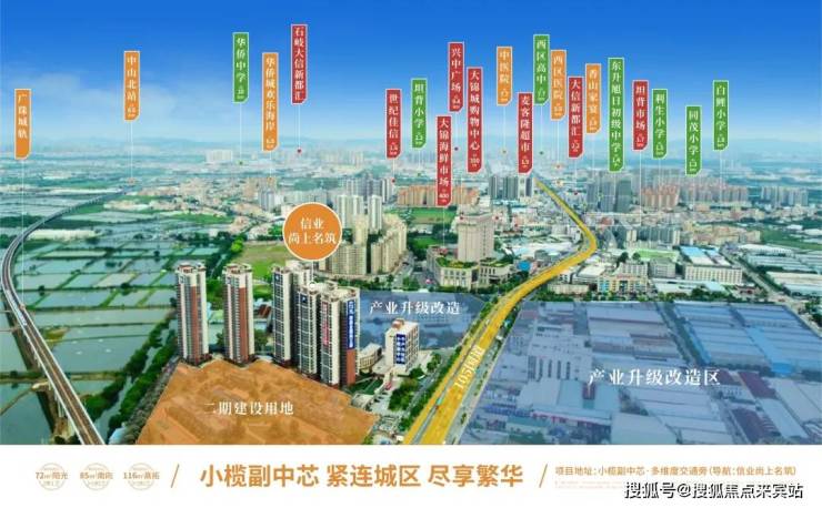 项目位于小榄副中芯,坐拥6大市场(坦背市场、大锦海鲜市场、同茂市场、乐民市场、兆益市场、白鲤市场)3大商圈(坦背市场商圈、大信新都汇商圈、壹加壹商圈)4大医院(东升医院、西区医院、中山中医院、中山人民医院),一站式成熟配套,尽享衣食住行无忧生活圈。