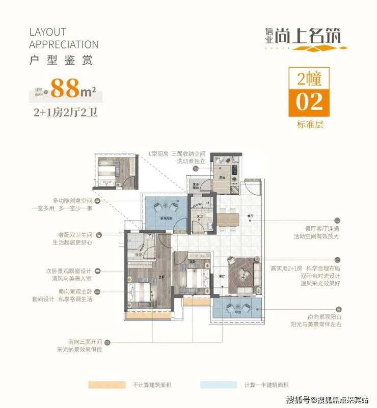 ☀实用88㎡2+1房2厅2卫【南向景观】