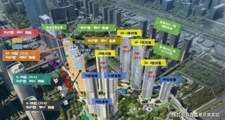 楼层高:55栋2-45层,56栋2-30层,57栋2-44层,60栋4-28层