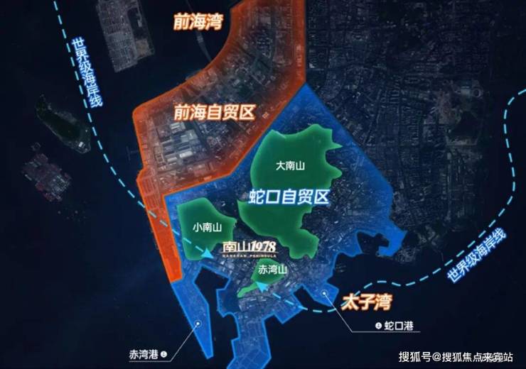 赤湾占据深圳双湾C位,三山环一海,享受前海&蛇口双千亿规划片区所带来发展红利,推动深圳迈向国际海洋中心城市。