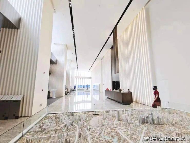 约11米层高,融合“光辉未来”设计理念,以充满能量的线性符号和天花模块群设计,打造核心大堂气派形象。