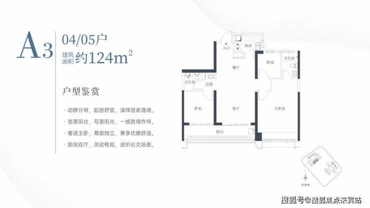 1栋一单元A3户型:面积约为124㎡