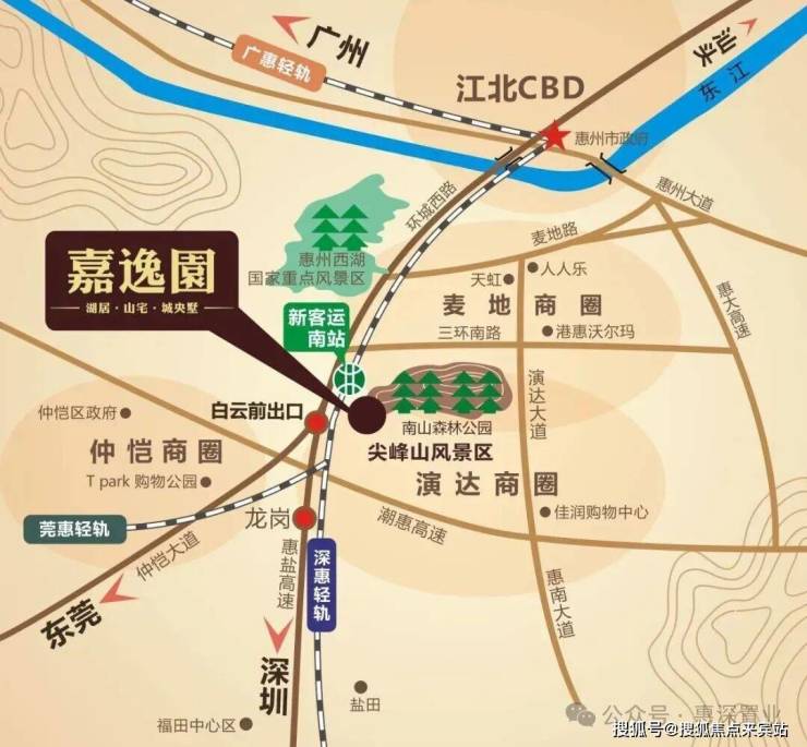 为找到一处显赫地段构建阁下的湖山生活,嘉逸园于惠州南大门书写鸿篇巨著。惠莞深三城核心位置,仲恺惠城双区枢纽,演达商圈核心区位,借助于惠州市“三片”、“两轴”和居住、教育、科研、生态旅游功能为一体的城市发展核心区位。长深高速白云前出口、深莞惠城际轻轨、惠州市客运总站仅5分钟车程。出门即是珠三角,仲恺大道、三环路、南山快速路直达惠城区四大核心商圈,尽享国际都会奢尚生活圈。