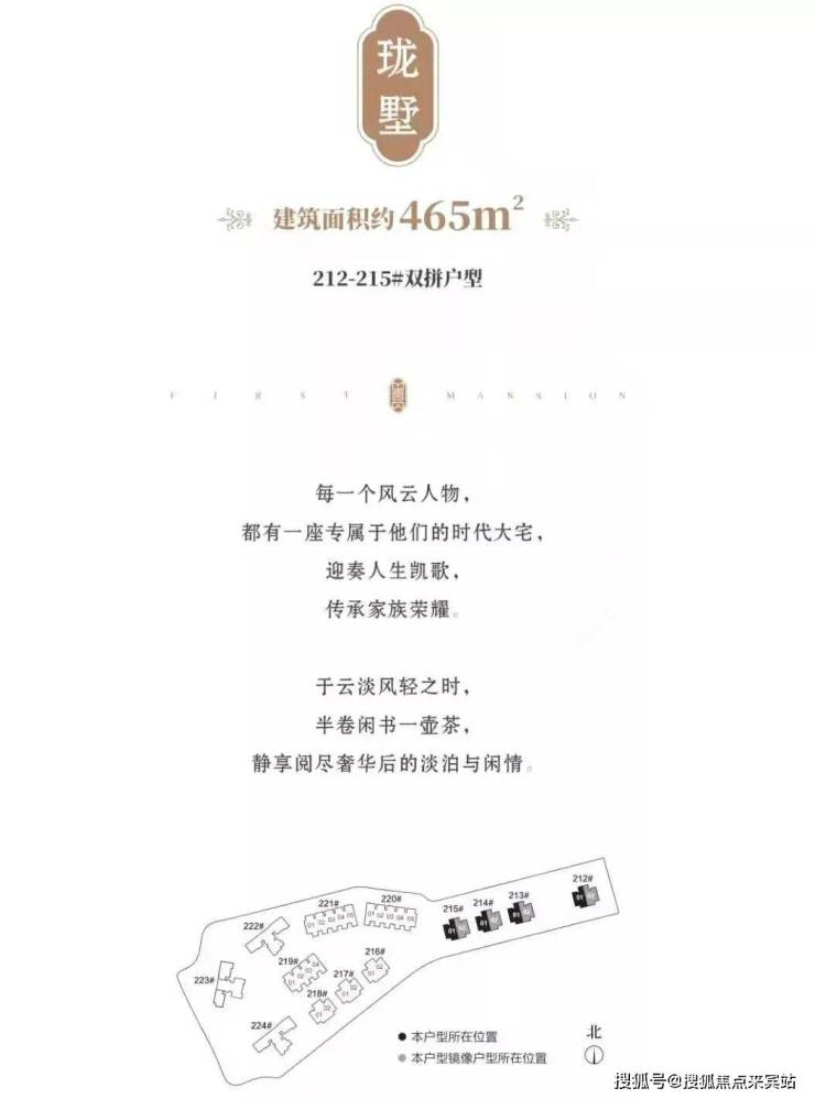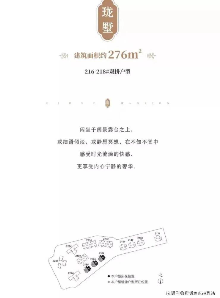 28套别墅:212-215#为465㎡双拼别墅,216-218#为276㎡双拼别墅,219-221#为245㎡联排别墅