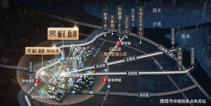 诚汇新都位于白鹅潭商务区核心区,涵盖35个地块,占地约54万㎡